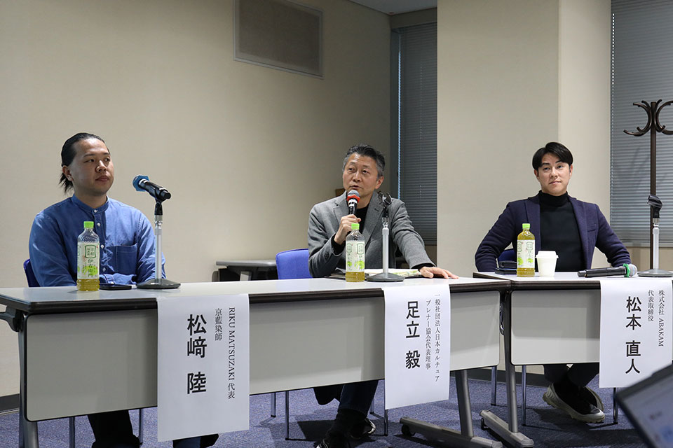 松﨑さんは、100年前に途絶えた「京藍」を復活させた背景から語りました。「地元の洛西がかつての藍の栽培地だったと知り、僕が復活させるしかないと思った」という松﨑さん。その視点は1000年という長い時間軸にあります。